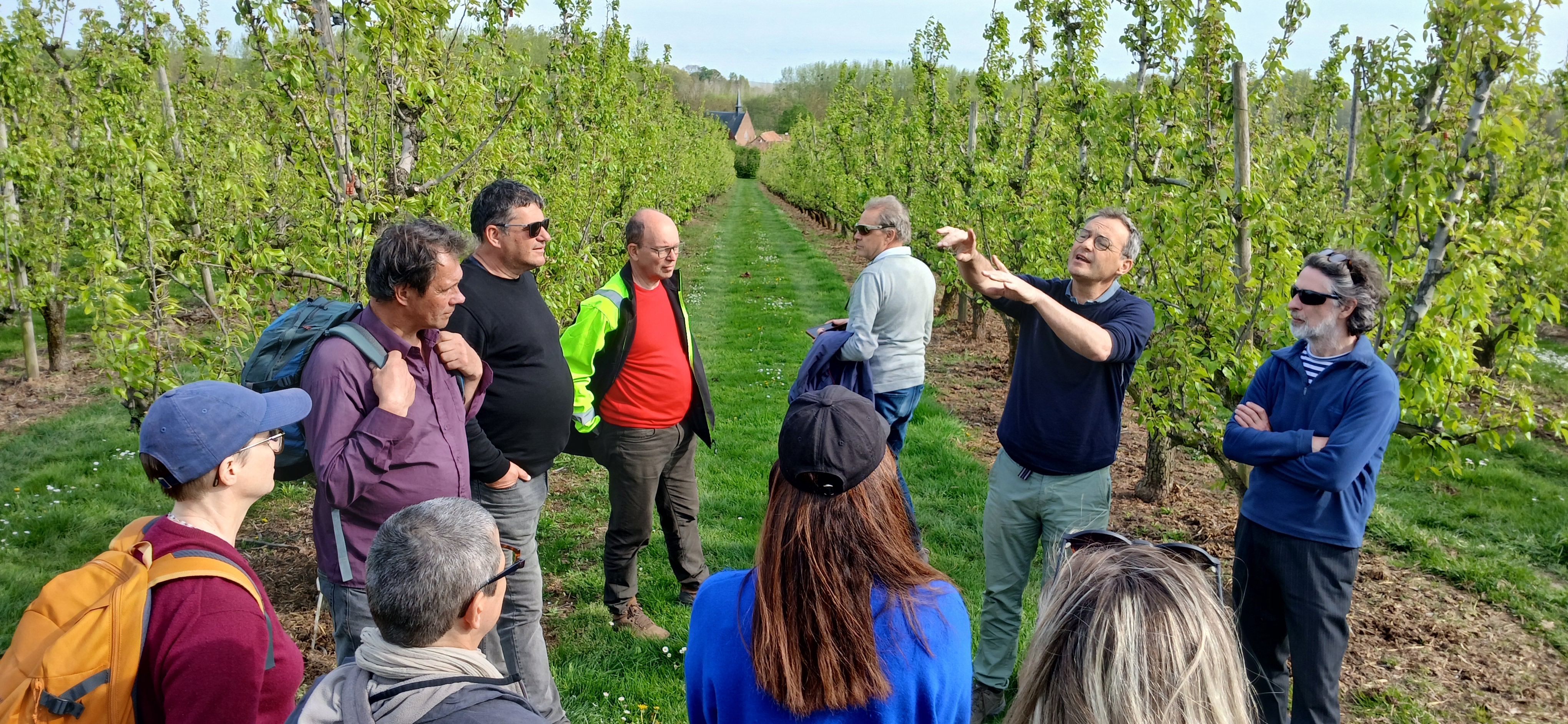 Op 19 april maakten we een excursie naar het Hart van Haspengouw, één van de eerste landschapsparken in Vlaanderen, gelegen in het glooiende Zuid-Limburg. Onder begeleiding van Wim Appeltans, coördinator van het park, verkenden we hoe geschiedenis, natuur en landbouw het landschap eeuwenlang hebben gevormd. We bekeken boomgaarden, holle wegen en karakteristieke vierkantshoeves, en ontdekten hoe landschapsbiografieën en het Masterplan ‘Hart van Haspengouw’ als leidraad kunnen dienen voor toekomstig ontwerp. Door te observeren, te luisteren en te discussiëren, leerden we hoe ontwerpers de identiteit, biodiversiteit en veerkracht van een landschap kunnen herstellen en versterken, terwijl mens en natuur in harmonie samenkomen.